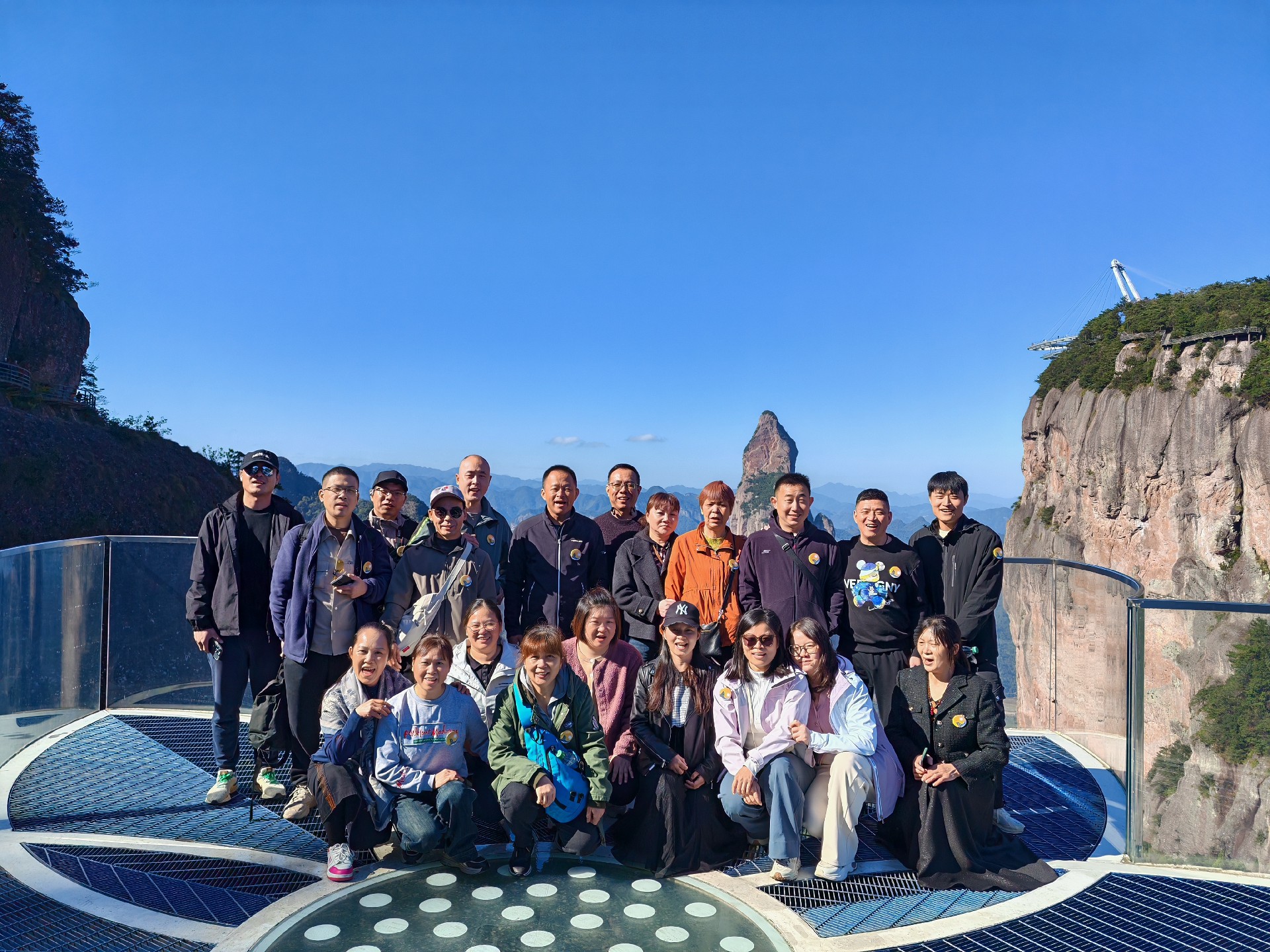 當dang我wo們men終zhong於yu走zou上shang如ru意yi橋qiao,俯fu瞰kan著zhe腳jiao下xia壯zhuang麗li的de山shan河he,心xin中zhong湧yong起qi一yi股gu強qiang烈lie的de成cheng就jiu感gan和he自zi豪hao感gan。遠yuan處chu的de山shan巒luan連lian綿mian起qi伏fu,雲yun海hai在zai山shan間jian翻fan騰teng湧yong動dong,仿fang佛fo一yi幅fu流liu動dong的de山shan水shui畫hua卷juan。此ci時shi此ci刻ke,所suo有you的de疲pi憊bei都dou煙yan消xiao雲yun散san,取qu而er代dai之zhi的de是shi對dui大da自zi然ran的de敬jing畏wei和he對dui團tuan隊dui力li量liang的de深shen刻ke認ren識shi。在zai這zhe片pian仙xian境jing般ban的de美mei景jing中zhong,我wo們men留liu下xia了le一yi張zhang張zhang珍zhen貴gui的de合he影ying,記ji錄lu下xia了le這zhe難nan忘wang的de瞬shun間jian,也ye見jian證zheng了le團tuan隊dui成cheng員yuan們men之zhi間jian更geng加jia深shen厚hou的de情qing誼yi。